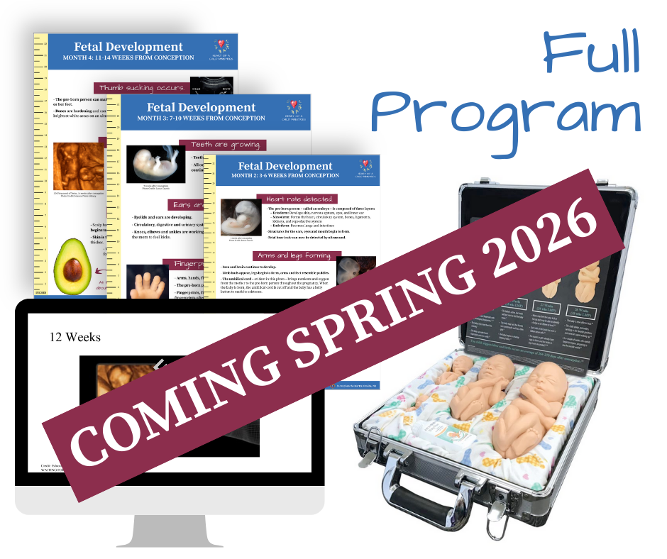 Currently being piloted in three schools, this teacher-led program features a series of nine posters—one for each month of pregnancy—highlighting powerful images and fascinating fetal facts. Each month, teachers introduce a new month of fetal development, helping students gain a deeper understanding of the miracle of life from conception to birth.